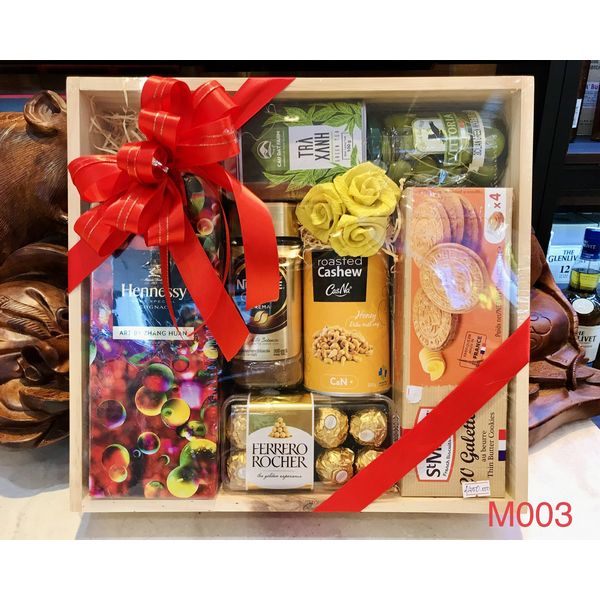 M003 - Hộp quà gỗ cao cấp Tết 2022, rượu Hennessy cao cấp