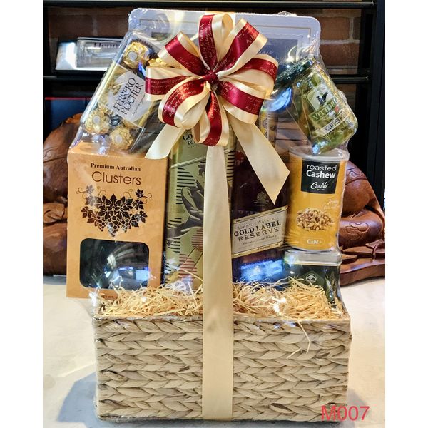 M007 - Giỏ quà đan lát thủ công cao cấp Tết 2022, rượu Gold Labed cao cấp