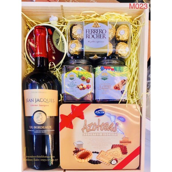 M023 - Hộp quà gỗ cao cấp Tết 2022, rượu Vang cao cấp