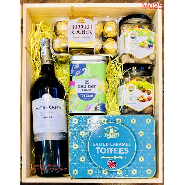 M025 - Hộp quà gỗ cao cấp Tết 2022, rượu Vang Jacobs Creek cao cấp